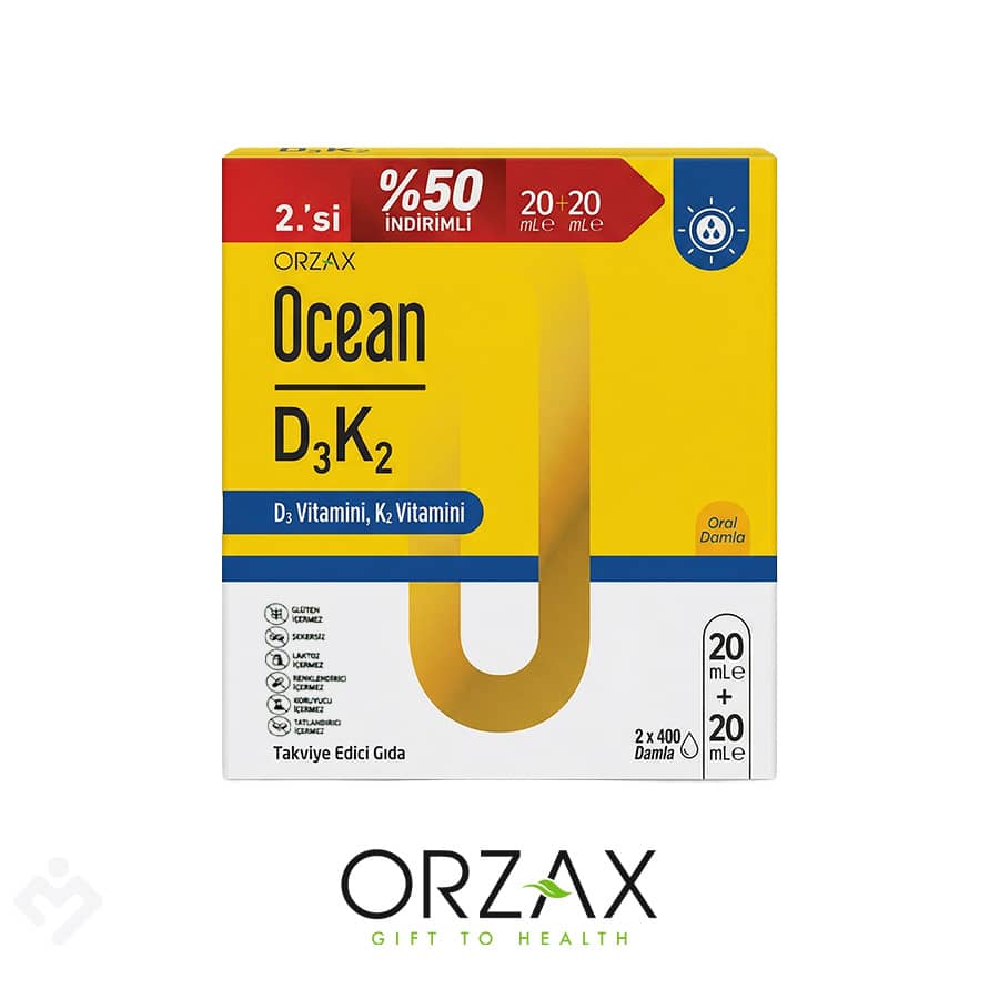Ocean Vitamin D3 K2, vücut sağlığı için hayati önem taşıyan iki vitaminin bir araya geldiği, yüksek biyoyararlanımlı bir takviye edici gıdadır. Bu özel 2’li Paket, kullanımda süreklilik sağlayarak bağışıklık ve kemik sağlığınızı uzun vadeli desteklerken, ekonomik bir alışveriş imkanı sunar. D3 vitamini kalsiyumun bağırsaklardan emilmesini sağlarken, K2 vitamini (Menakinon-7) bu kalsiyumun damarlarda birikmesini önleyerek doğrudan kemiklere ve dişlere yönlendirilmesine yardımcı olur.