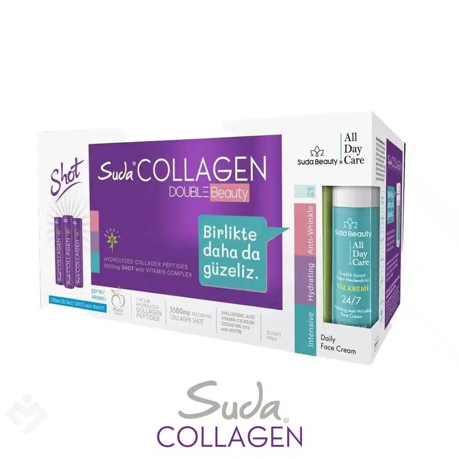 Suda Collagen Double Beauty Peach Aromalı 30x40ml İçime Hazır Sıvı, cildinize ve güzelliğinize iki kat destek sağlar. Bu özel formül, kolajenin etkilerini arttırarak cildinizin daha sıkı, parlak ve genç görünmesine yardımcı olur. İçeriğindeki doğal malzemeler sayesinde, cildinizin elastikiyetini arttırırken aynı zamanda saç ve tırnaklarınızın güçlenmesine de katkıda bulunur.